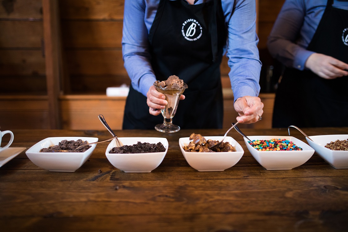 So simple and yet so sweet! We set up a staffed station where Waffle cones or Bridgeman's dishes are served to your guests with scoops of premium Bridgeman's Ice Cream. As always, we provide everything needed for this dessert option including the scoopers! Please remember, toppings are not included with this package.